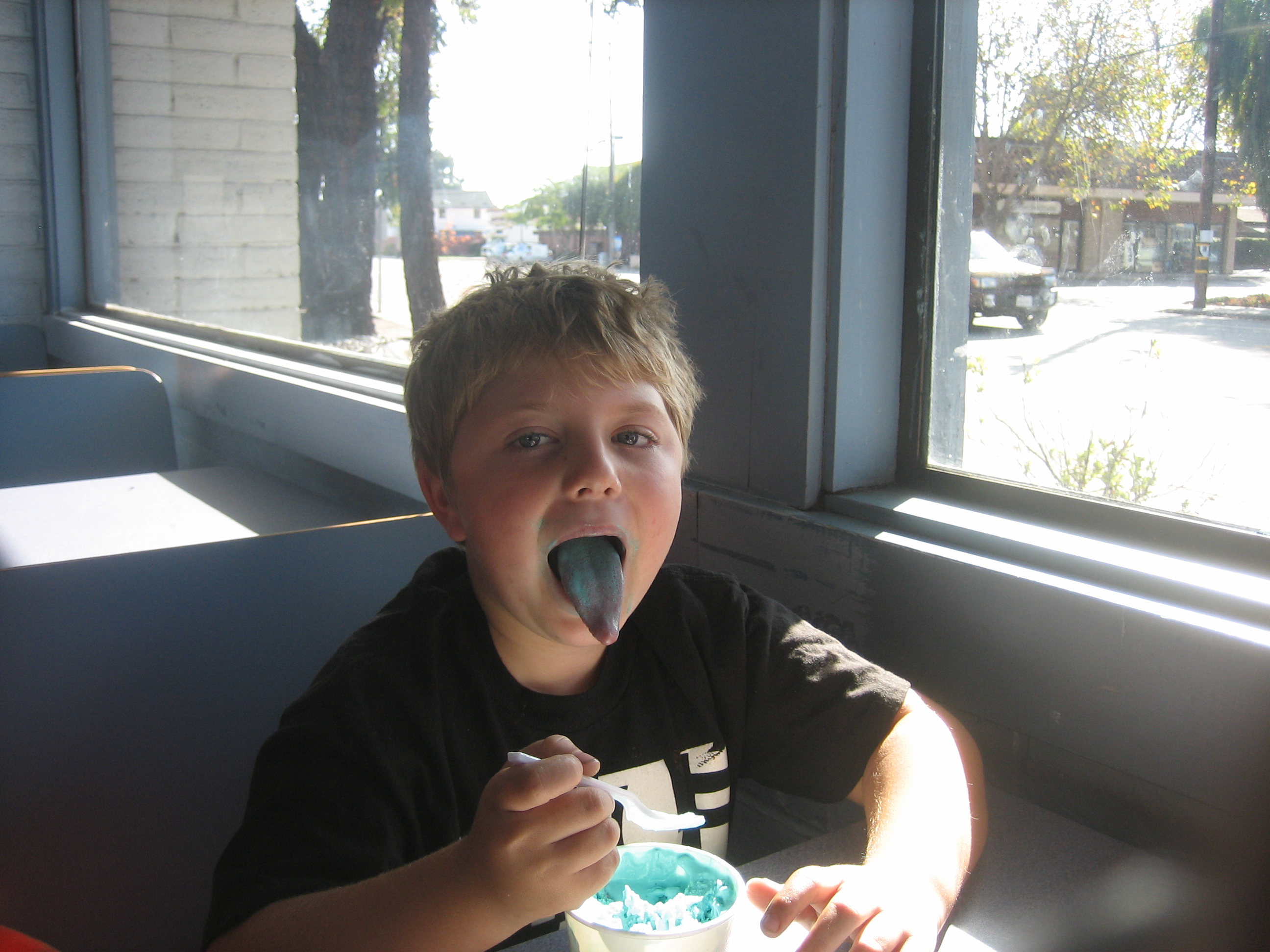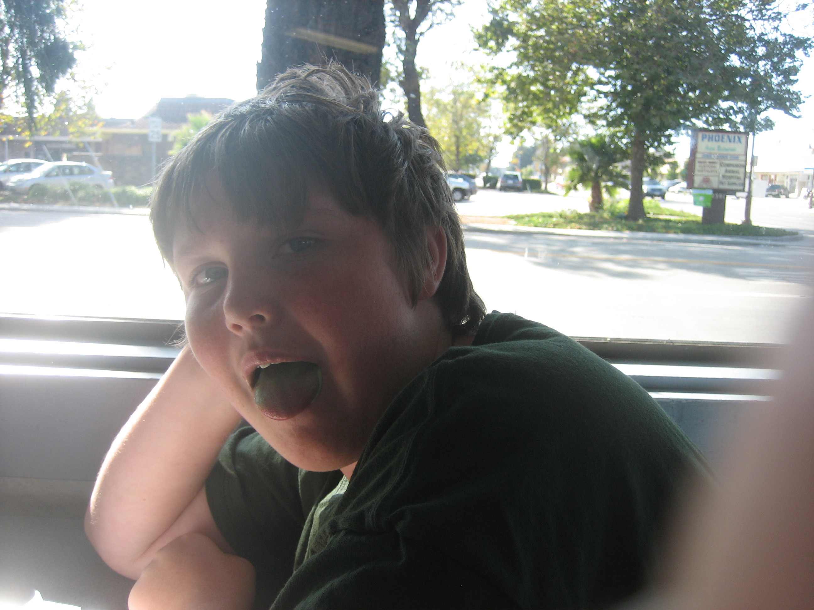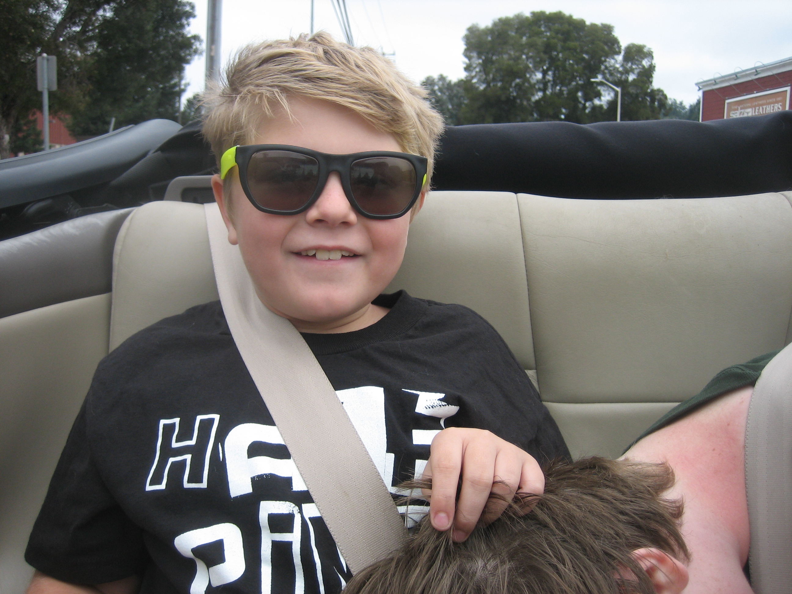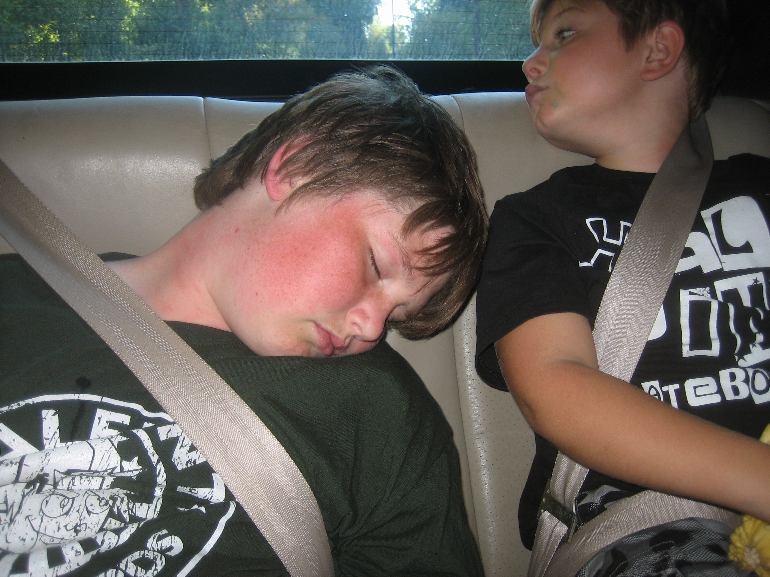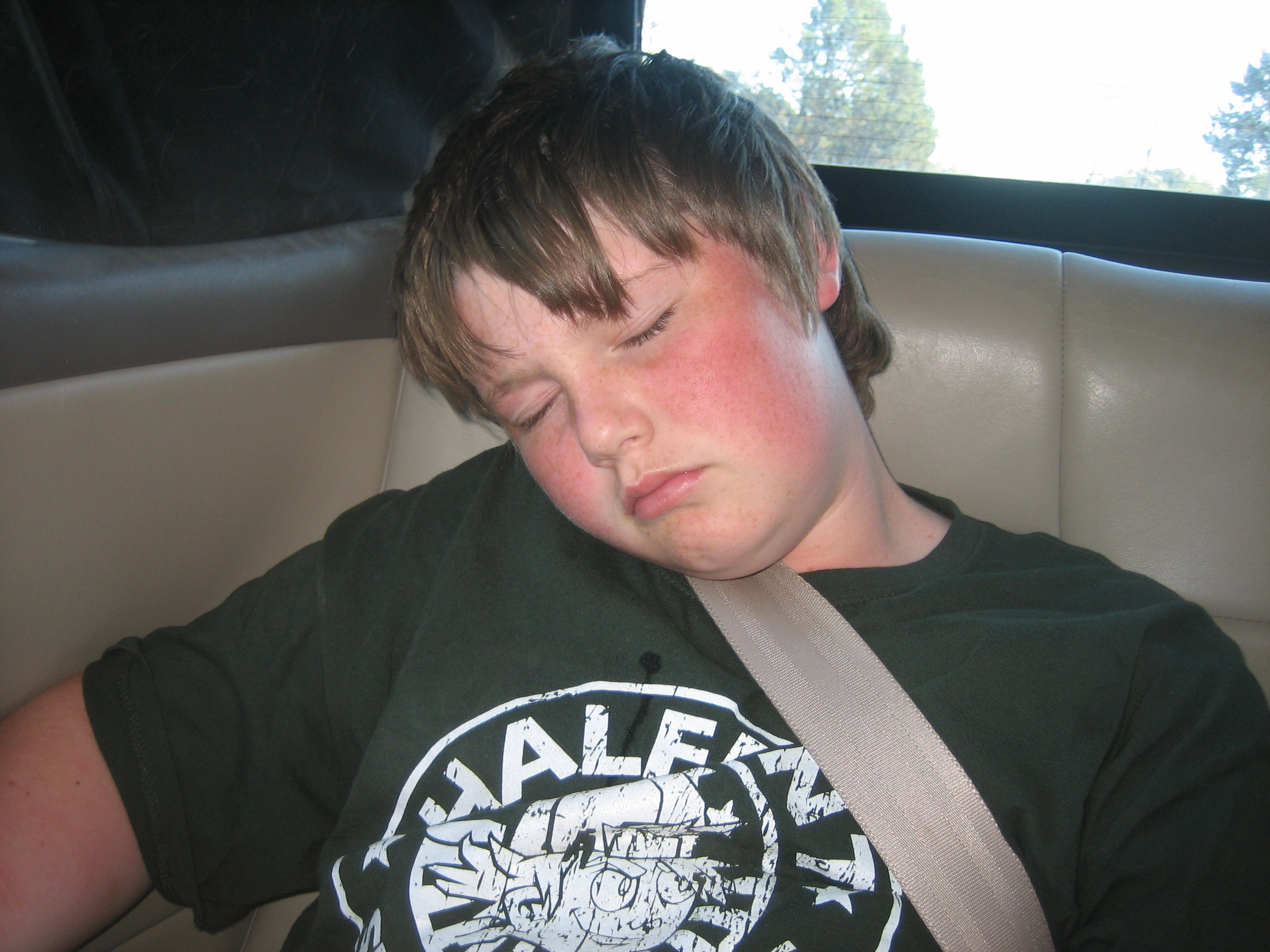 cool kid in the back seat... and... party animal (up till 4am the night before)... crashed... Me: "ok... after getting pumpkins, who wants pizza"... "yeah"... Raz: "yeah?... who wants donuts and ice cream"... "YEAH!!!"