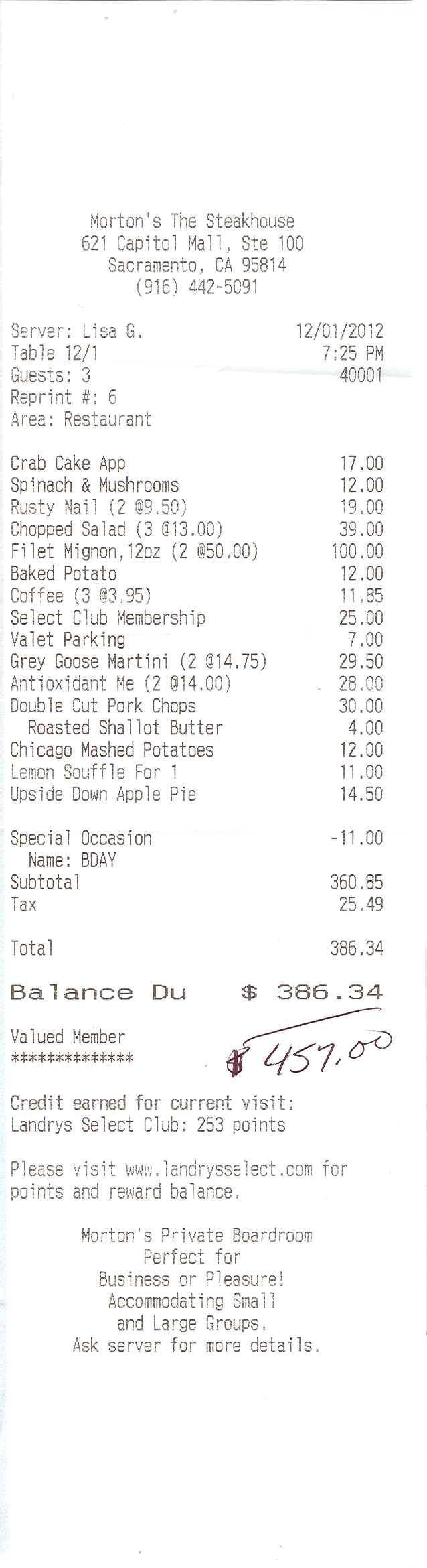 We take Sharyl to Morton's The Steakhouse in Sacramento for her birthday... would you like to know more... www.landrysselect.com ![]() personalized menu... nice touch...