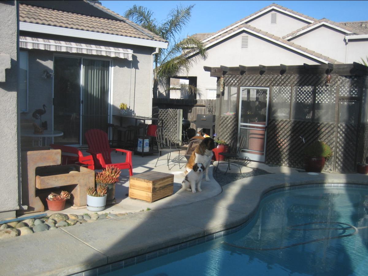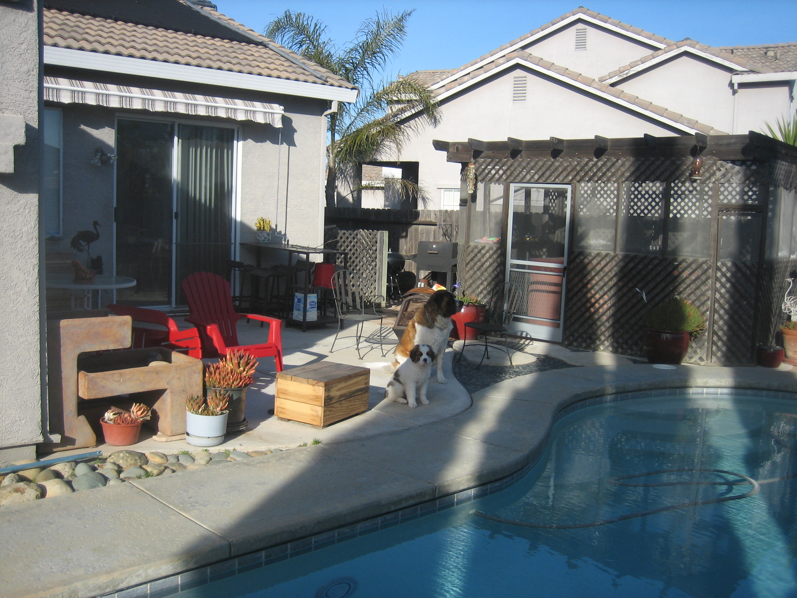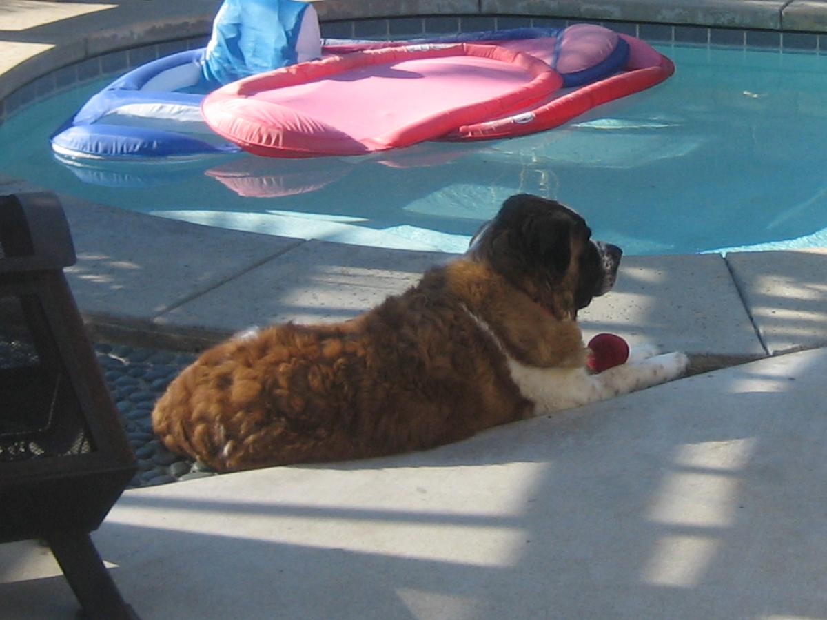 28JUL13/Sunday... Izzy, Penny, and, Roxi... doing laps around the pool w/Dani...