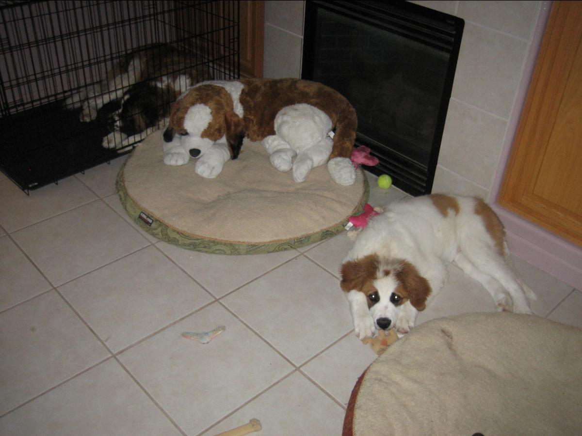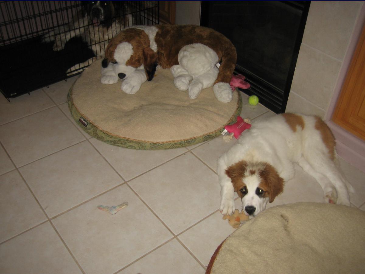 18FEB13: "Penny" has totally discovered a new chew toy... IZZY!!!...