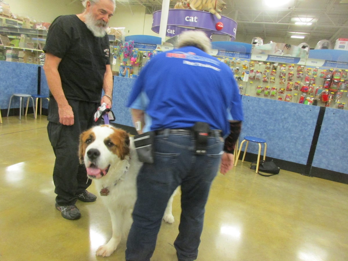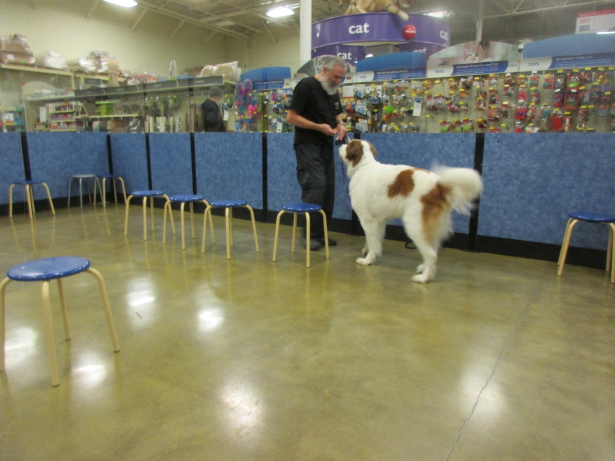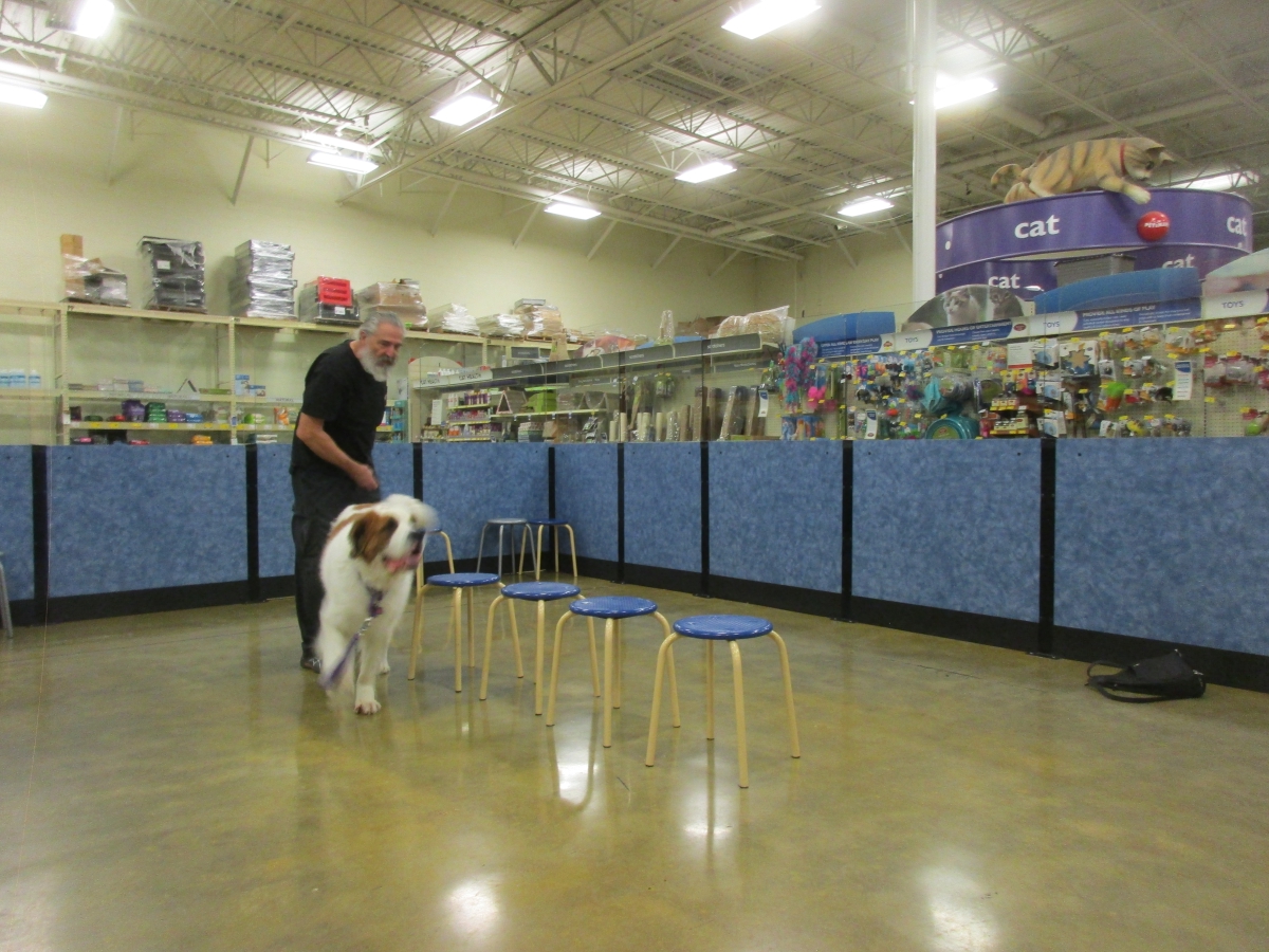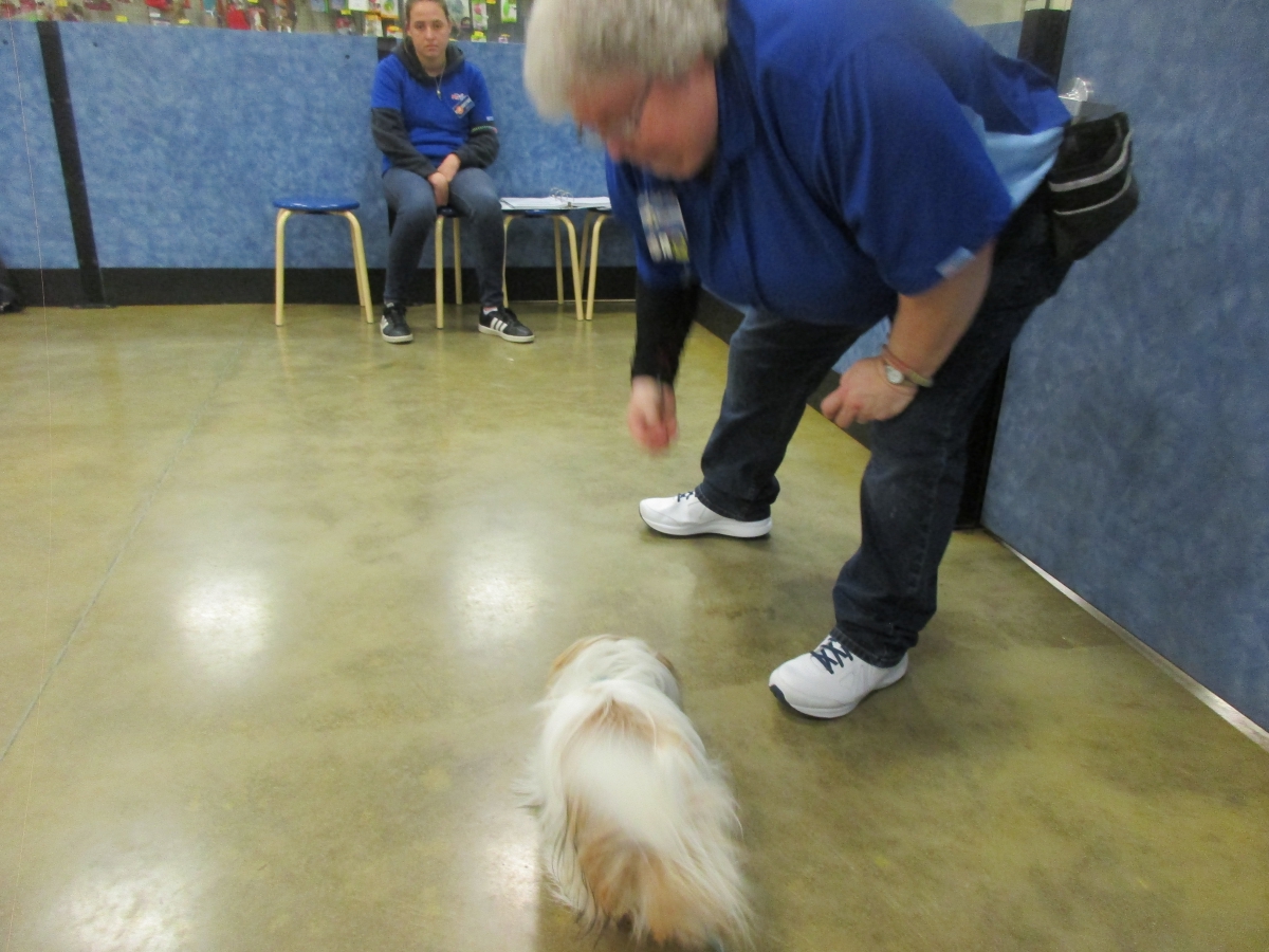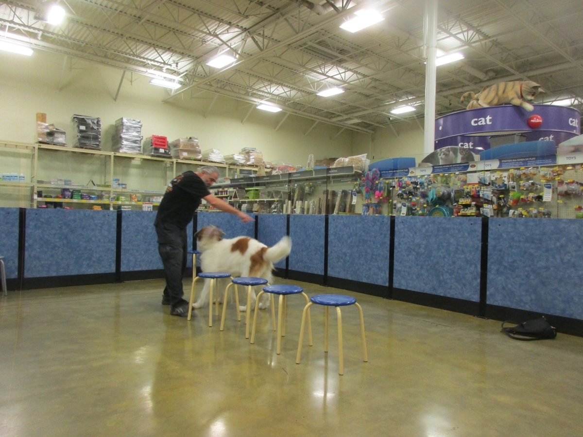 Penny helps Jamie's training of Cat, a new trainer from the Vacaville Petsmart, in the proper way