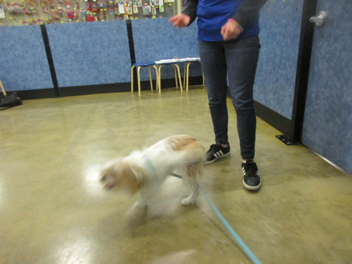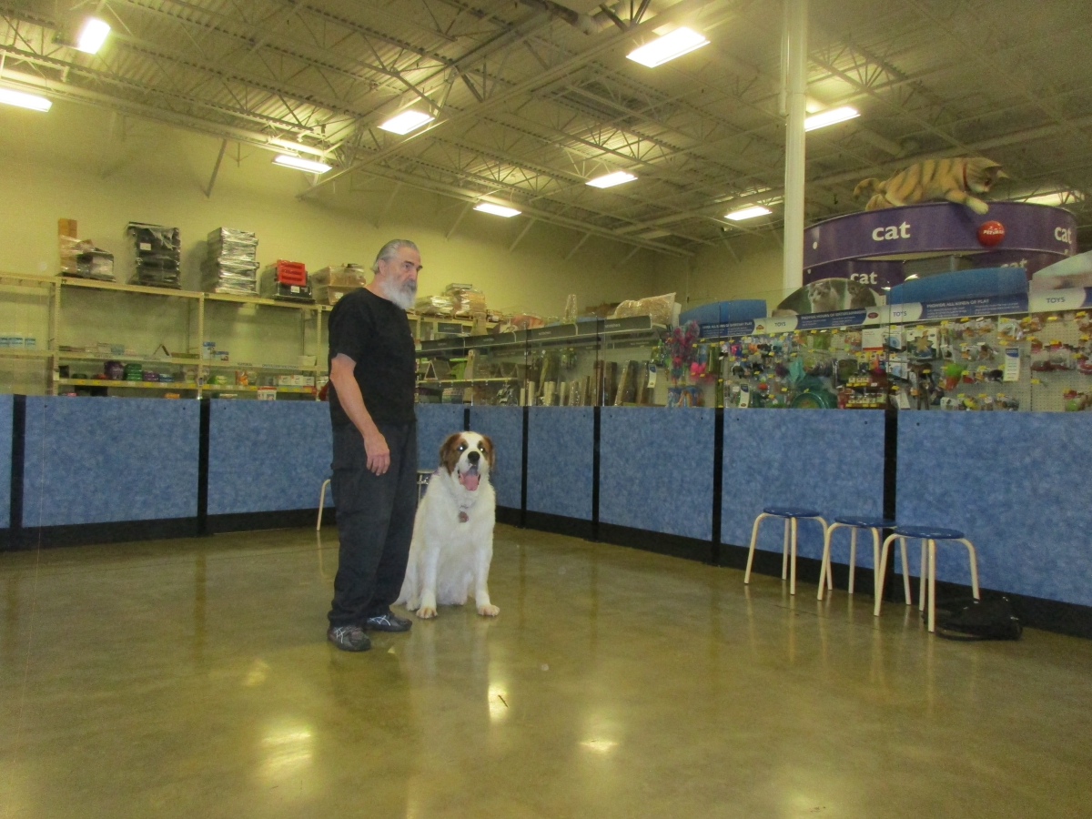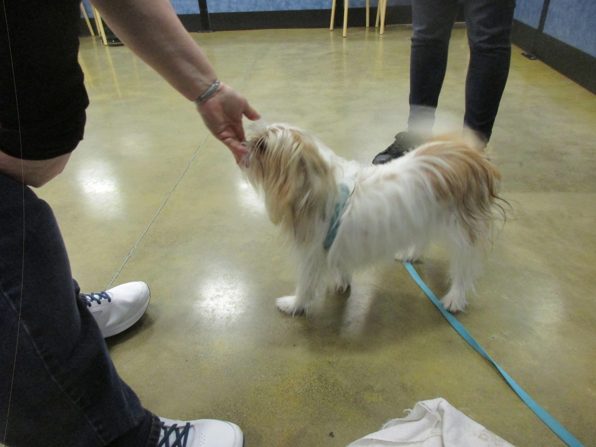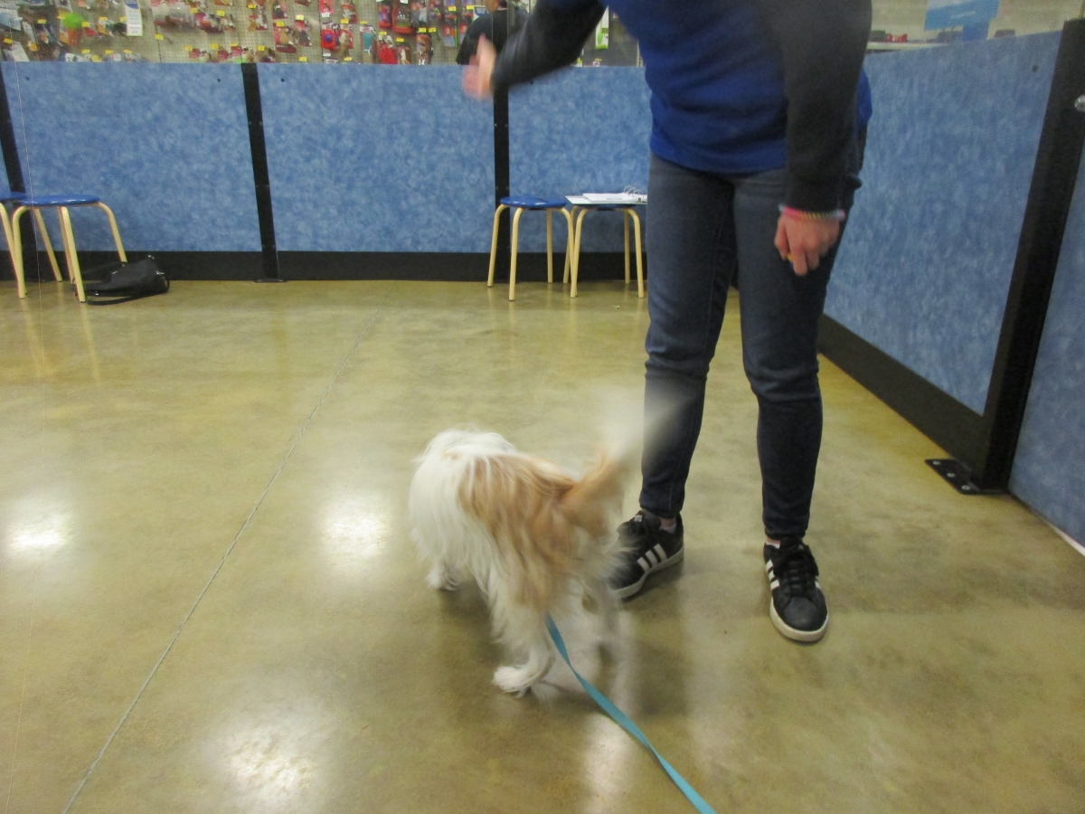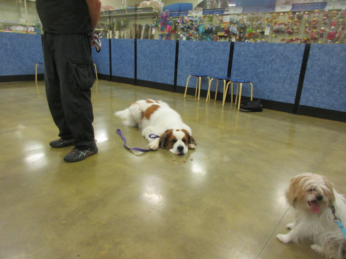 Penny helps Jamie's training of Cat, a new trainer from the Vacaville Petsmart, in the proper way