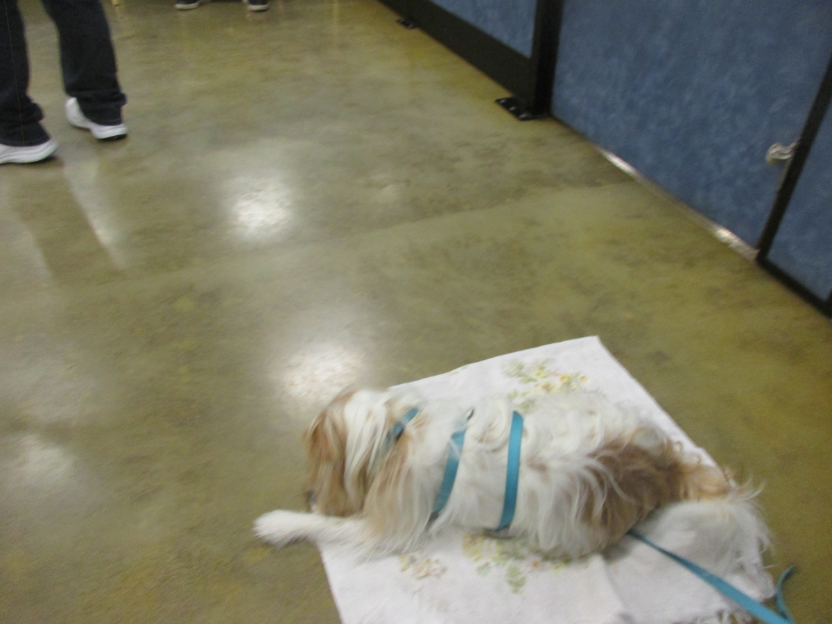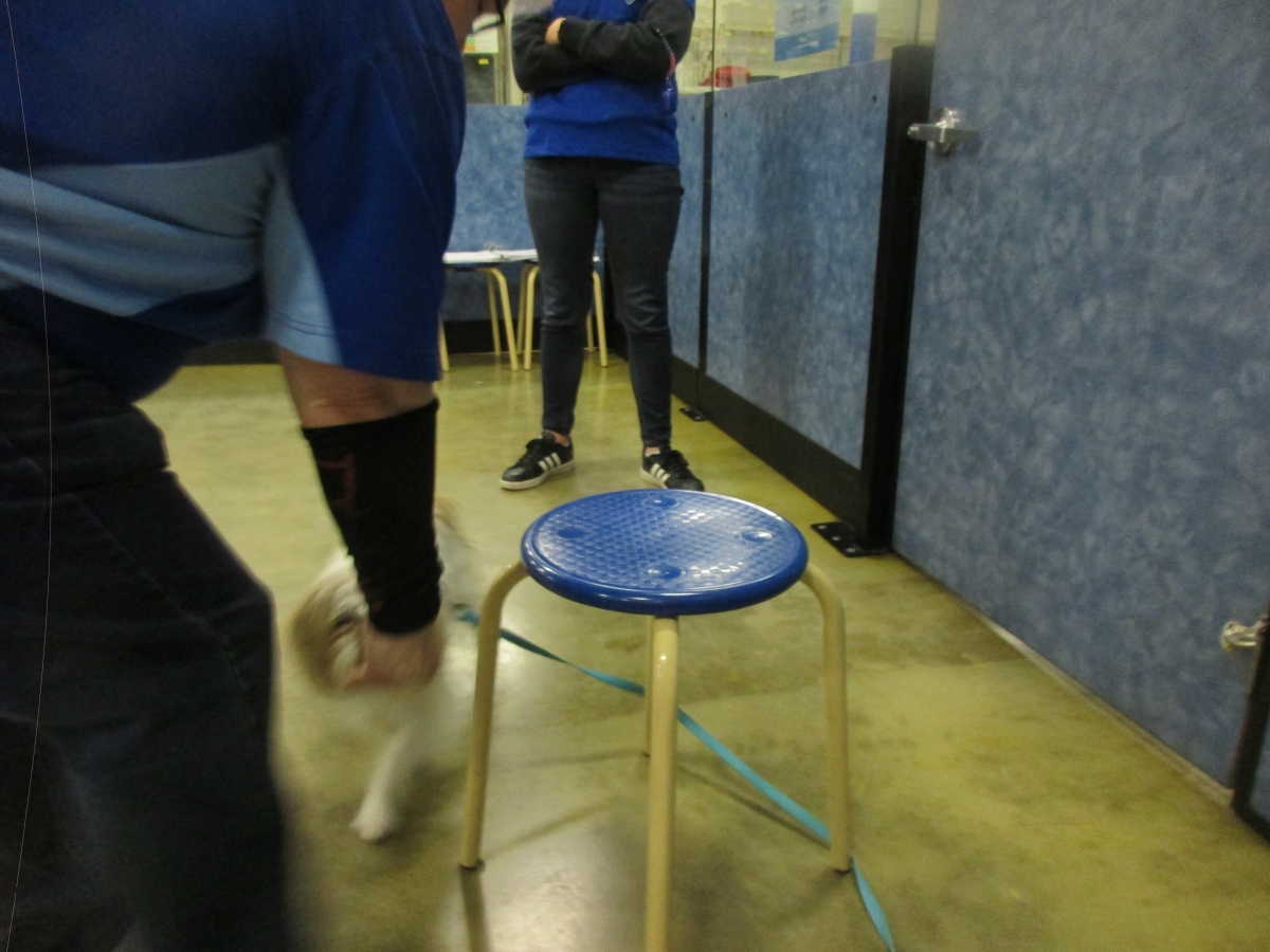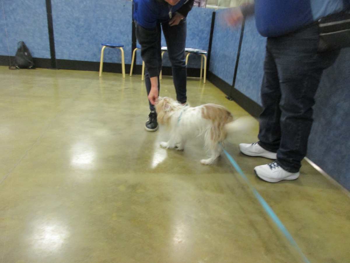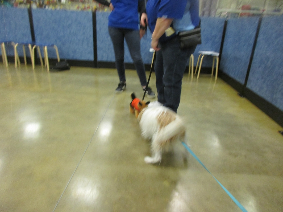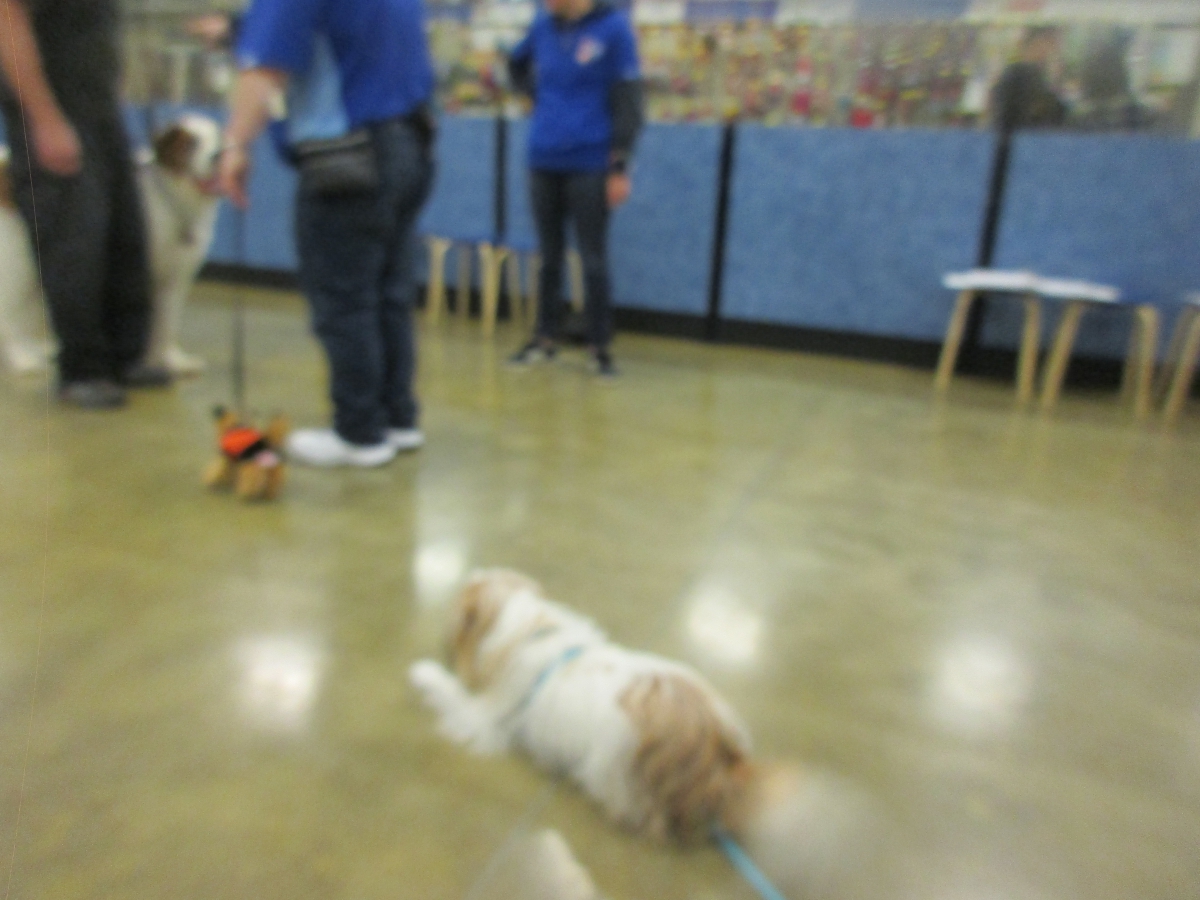 Penny helps Jamie's training of Cat, a new trainer from the Vacaville Petsmart, in the proper way