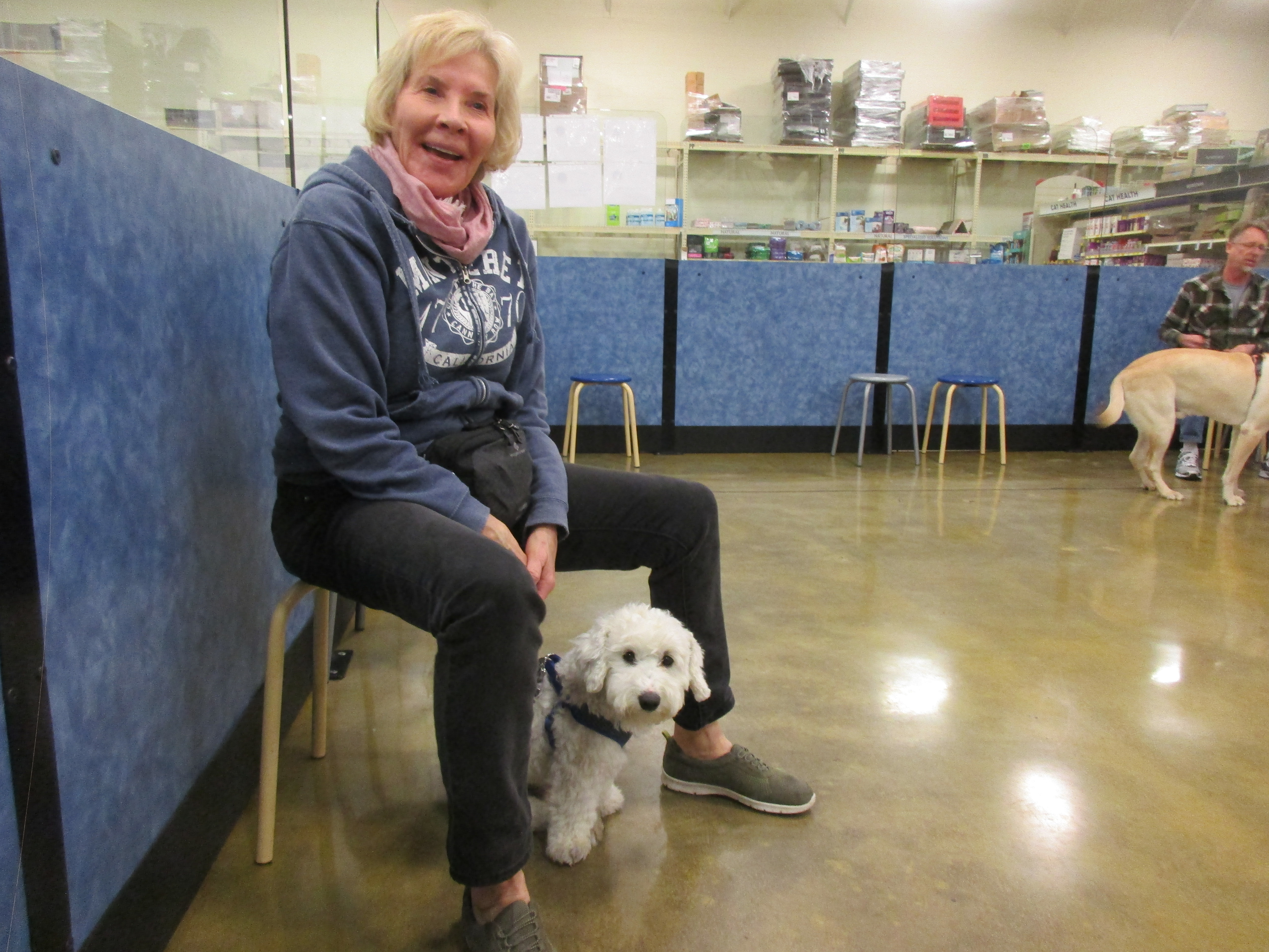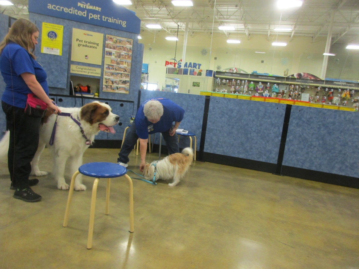 Penny and Lucy help Jamie's training of PetsMarts' Walnut Creek/Pitsburg new dog trainer, Elizabeth Coleman...